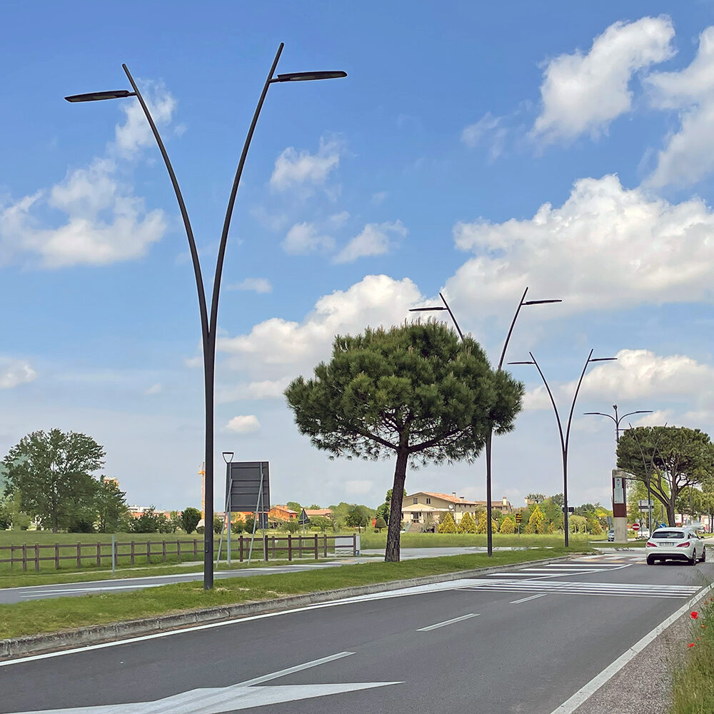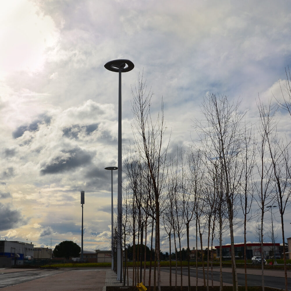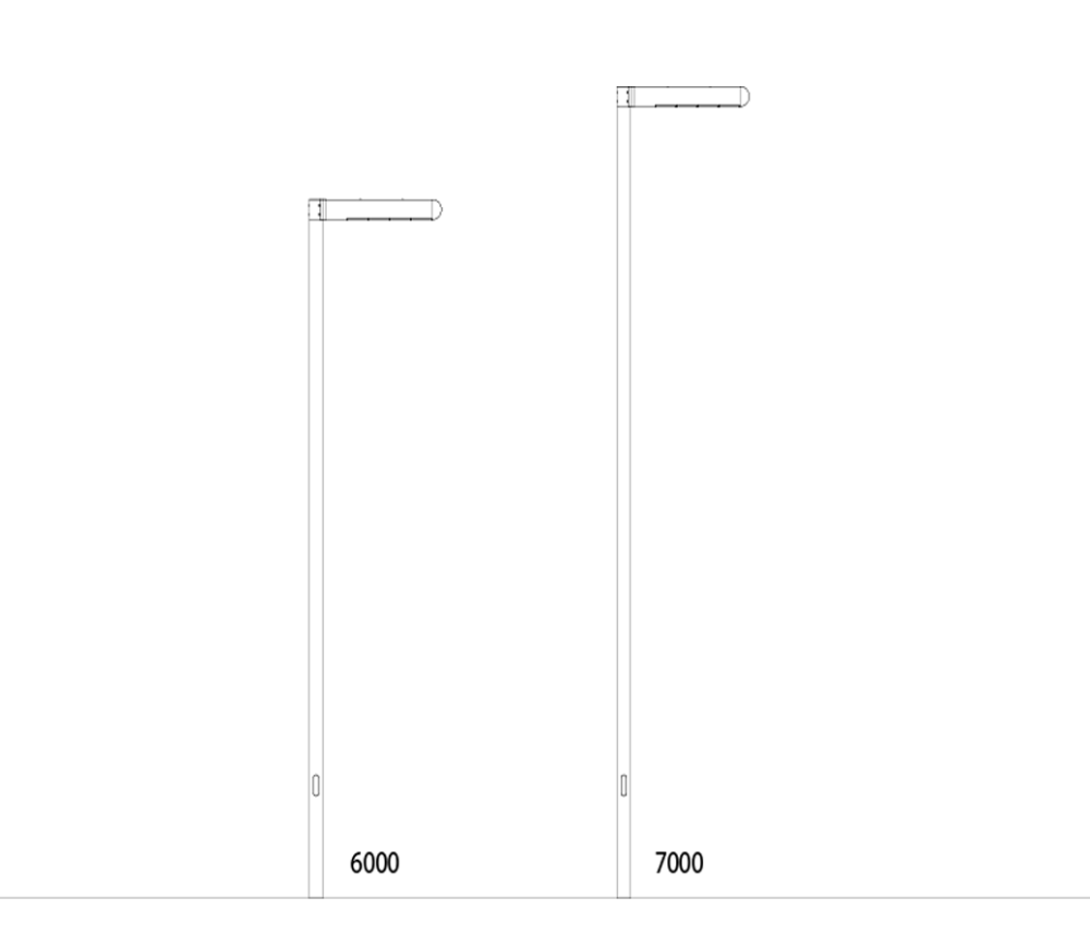 Mât en acier Ø127 avec section circulaire réalisé en une seule section avec embout d’extrémité conçu pour les luminaires de la gamme Dragon.