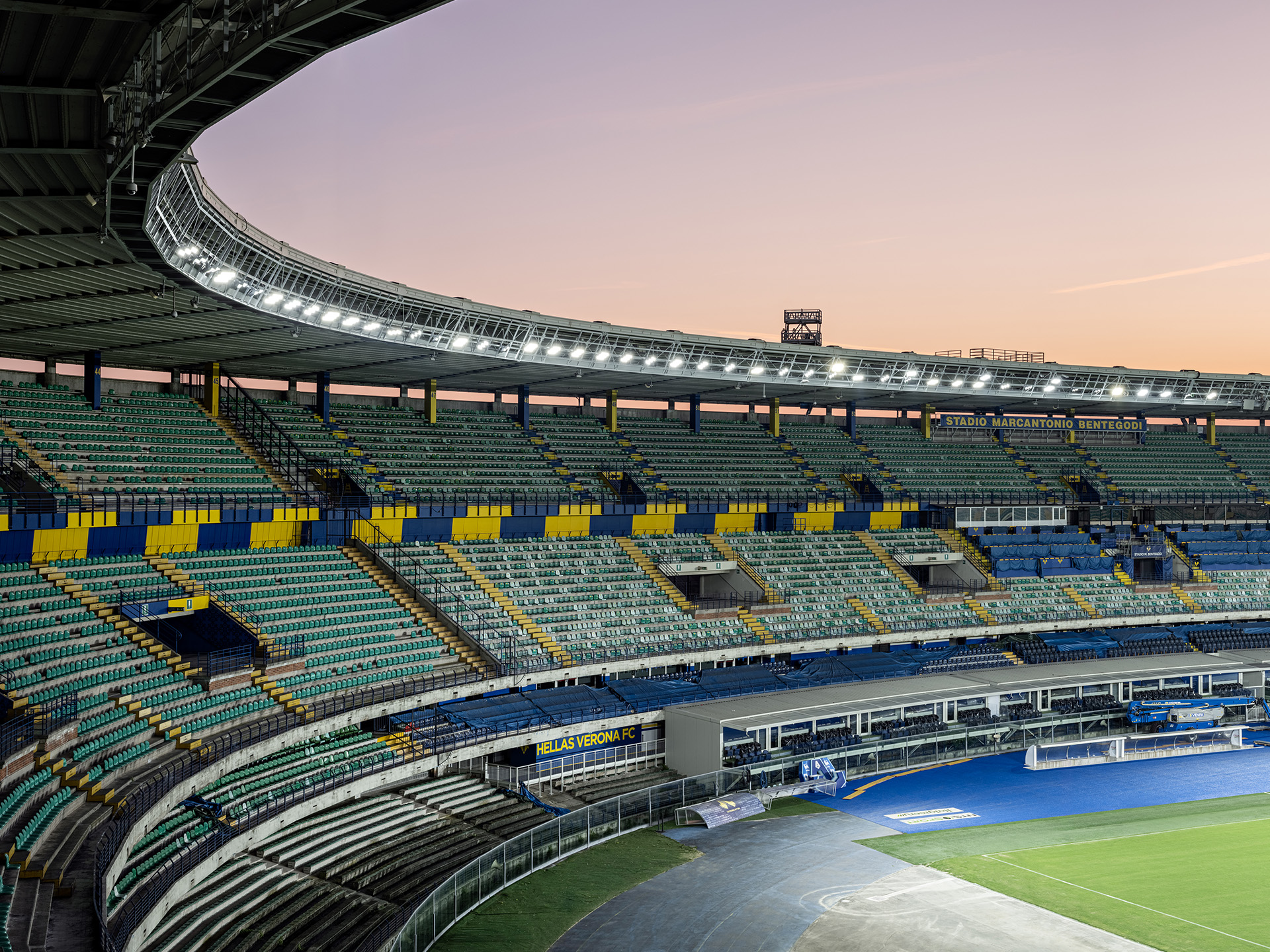 Avec le nouveau système d’éclairage, le Stade Bentegodi est